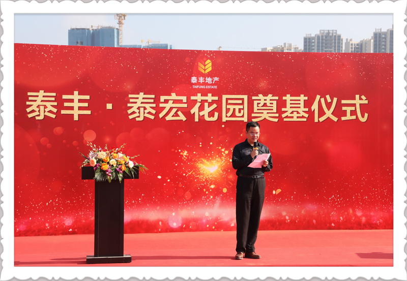 祈福儀式后,惠州城市公司總裁葉文治先生作為泰宏花園(楓林岸)項目股東代表致辭,表達了對新項目的殷切祝福與期望,并表示,在各位股東、領導及同事們的指導和支持下,必將會保質(zhì)保量順利地完成各項開發(fā)目標,讓“泰豐?泰宏花園(楓林岸)”項目成為泰豐地產(chǎn)在惠州的又一代表性優(yōu)質(zhì)樓盤。