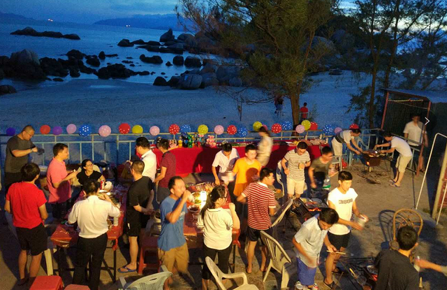 伴著皎潔的月光,聽著悅耳的海浪,露天K歌也別有一番味道,動人的歌聲將現(xiàn)場氣氛推向高潮。大家在這個和諧的大家庭里,感受著親人之間的溫馨和溫暖。