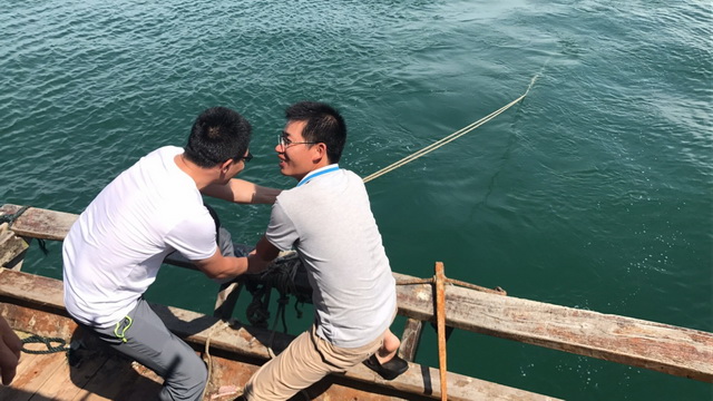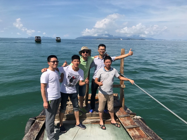 第二天一早,興致昂揚的同事們早早來到碼頭集合,我們出海捕魚啦!漁船駛離港口撒下漁網(wǎng),途中欣賞三角洲島碧綠的水、湛藍的天,無比愜意。最后在大家的期待和男同胞齊心合力下收網(wǎng),雖然休漁期收獲不多,但我們體會的是捕魚過程的快樂。